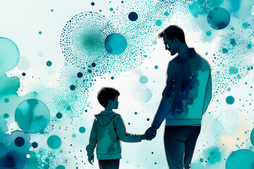 Solitary young man sitting on floor behind dotted glass panel in minimalist interior