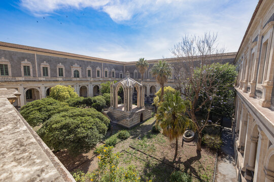 Cloister of the Benedictine Monastery of San Nicolo l'Arena in Catania, Sicily, Italy, - a jewel of the late Sicilian Baroque style.