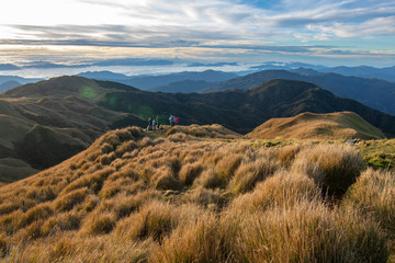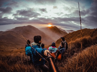 hikers in the mountains witnessing sunrise in Mt. Pulag in the Philippines.