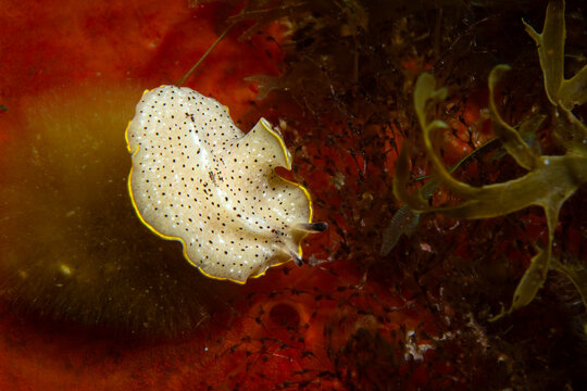 Moseley's Flatworm (Prostheceraeus moseleyi) in Tamariu – Spotted Polyclad with Yellow-Fringed Mantle on Mediterranean Reef