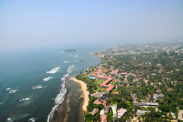 Aerial view of Bentota beach and the secret island, Sri Lanka
