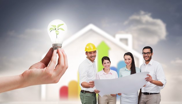 Composite image of casual architecture team working together