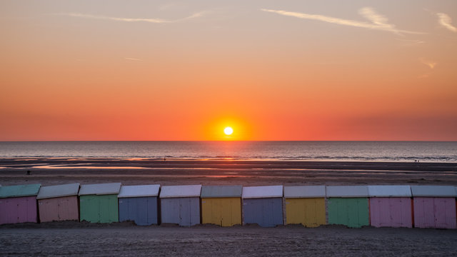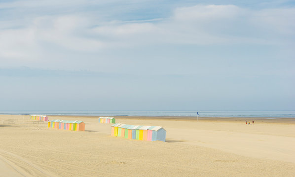 Famous colourful houses on the beach of Berck-sur-mer at English channel, France