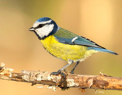 Vibrant blue tit perched on a branch against a soft bokeh background