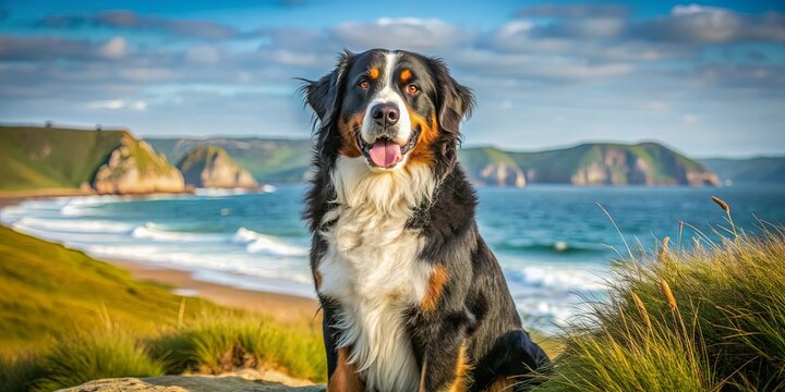 Friendly and loyal Berner sennen dog posing in a picturesque setting, Berner sennen, dog, large breed, fluffy