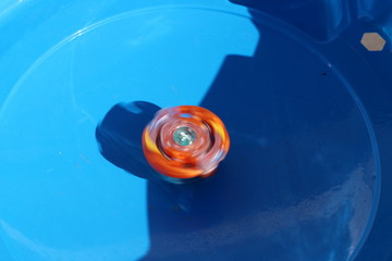 Beyblade battle of spinning toys in a fight of a Japanese origin game