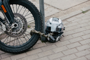 Bike chain and wheel lock on the street