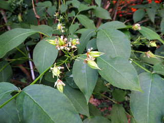 Closeup of the distinctive, green bifid leaf of the Ernest August's palm plant.