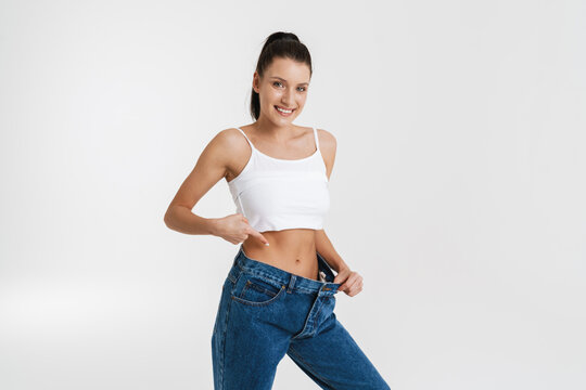 Young african american woman standing casual and cool over grey isolated background with a big smile on face, pointing with hand and finger to the side looking at the camera.