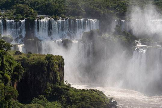 Beautiful landscape of big waterfall set on green rainforest