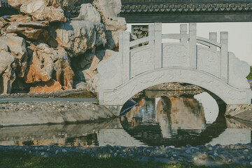 Barrel-vaulted stone tunnel framing narrow canal with cracked paving, arches and reflections