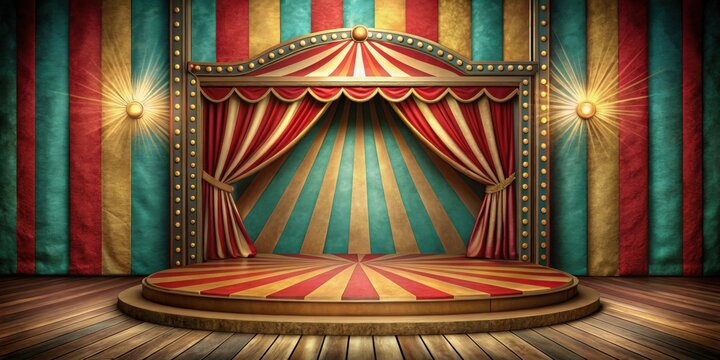 Colorful multi colored circus tent background and twinkling lights with space for copy.
