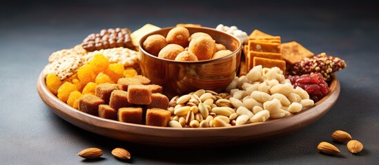 Indian festival food snack sweet for winter folk festivals in Punjab and Tamil Nadu, including Lohri, Makar Sankranti, Pongal, and Diwali, containing til chikki, peanut chikki, murmura ladoo, laddu
