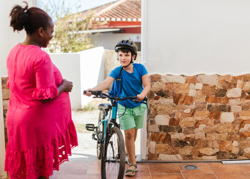 Father, son and bicycle success in outdoor, learning and bonding on road for child development. Daddy, boy and teaching on neighborhood street, training and support for celebration in riding lesson