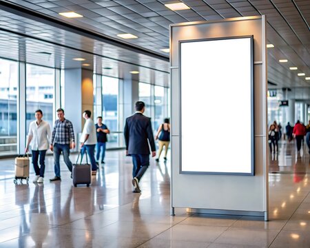 big mock up of vertical blank advertising billboard or light box showcase at airport, copy space for your text message or media content, advertisement, commercial and marketing concept, Generative AI