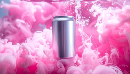 Mock up can with ink clouds billowing around