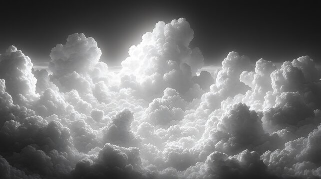 Dramatic Black and White Cloudscape with Cumulus Clouds in Contrast