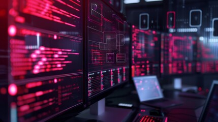 Binary code streaming on digital screen in cyber control hub