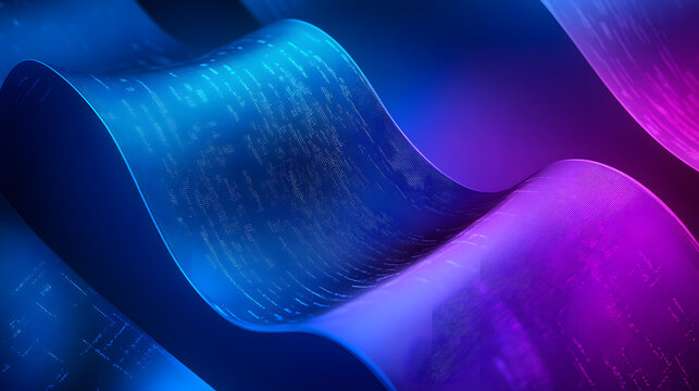 Abstract Wavy Data Stream with Neon Blue and Purple Gradient