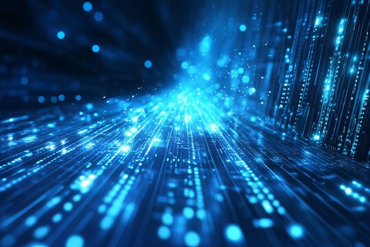 Abstract Futuristic Technology Background with Glowing Blue Digital Interface and Data Stream Visualization