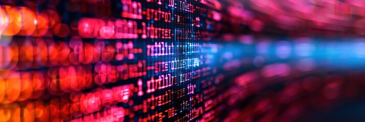 Binary code and glowing wave on a vibrant gradient background