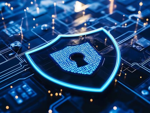 A person's hands working on a laptop keyboard with digital data overlay in a futuristic setting.
