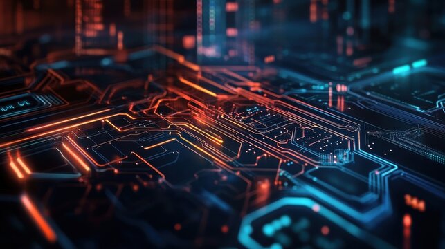 Transparent background, futuristic digital circuit overlay