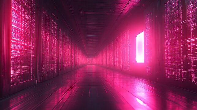 Pink neon-lit corridor with data streams.