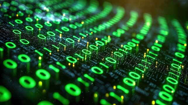 Binary Code Stream On Green Background Reflecting Digital Technology Images