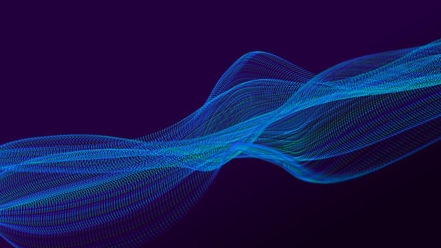Abstract wave of sound particles. Equalizer for music. Signal transmission. 3d rendering.