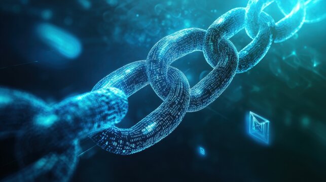 Futuristic chain links formed by binary code with digital envelope