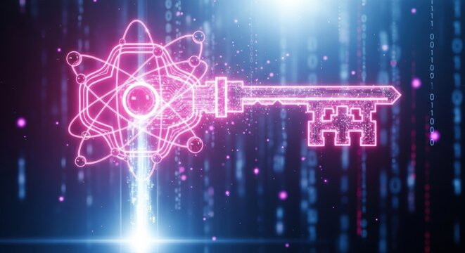 Unlock digital security with this vibrant glowing key, a modern symbol for cybersecurity, data protection, and encryption in our increasingly connected world