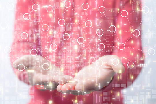 Global network. Blockchain. 3D illustration. Neural networks and artificial intelligence. Abstract