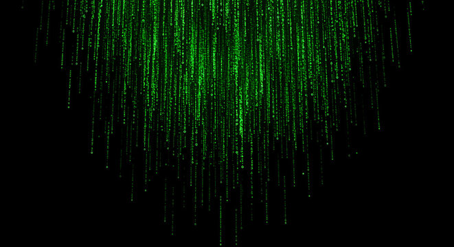 A digital rain of green code cascading down a dark background creating a matrix like effect on screen