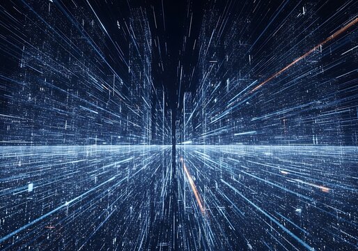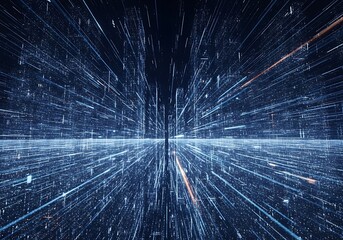 Abstract digital data stream with blue light streaks