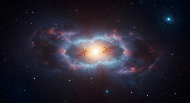 Close-up of a binary star system in a vibrant nebula