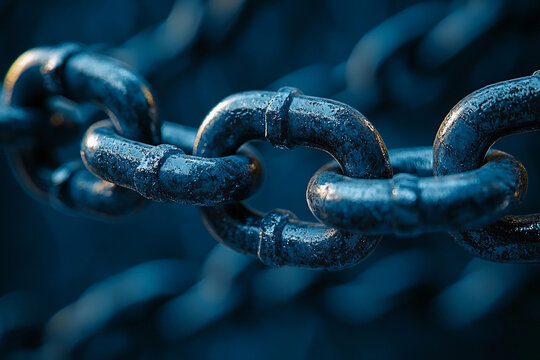 Close-up view of a weathered iron chain in dim lighting at dusk