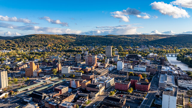 Summer afternoon aerial view of Binghamton New York, upstate NY - October 2024