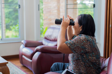 Close-up of beautiful woman with binocular
