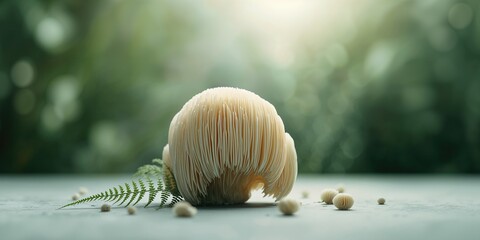 Hericium erinaceus fungi used as a natural nootropic, featuring Lions Mane extract with bioactive compounds, cognitive support