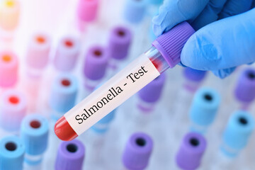 Doctor analyzing blood sample with test tube in lab