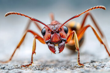 Macro realistic photo of a tick crawling on a green blade of grass in natural daylight with sharp detail of body and legs in photorealistic style.
