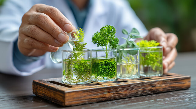 Research Scientist Examining Plant Samples in Greenhouse Laboratory