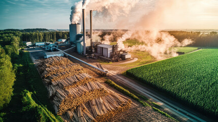 Biomass energy factory. The station uses waste wood biomass as an energy source, and provides electricity and heat. Ecological recycling factory