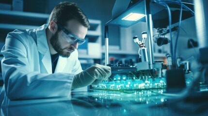 Scientist conducting advanced research amidst high-tech laboratory setup