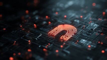 Glowing fingerprint icon on a circuit board, symbolizing digital security and access