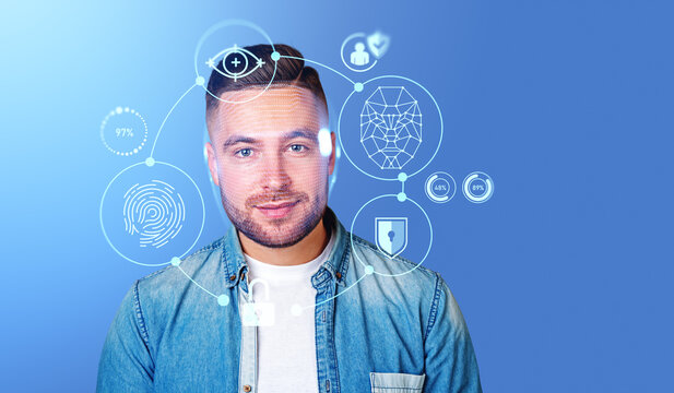 Biometric Face Recognition And Data Analysis Technology Concept Images