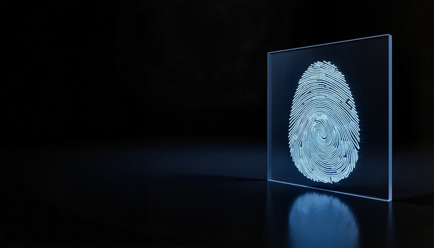 Digital fingerprint representation on a dark background for blogs, websites, security presentations, educational content, identity verification materials, and technology-themed designs