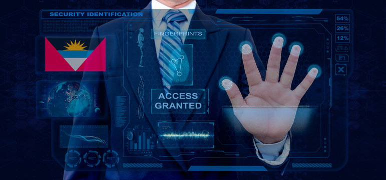 Finger Print Biometric Scanning Identification System. Businessman scan fingerprint biometric identity and approval. Antigua and Barbuda Nationality