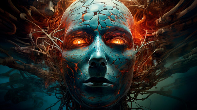 Digital convergence of human and artificial intelligence in futuristic portrait